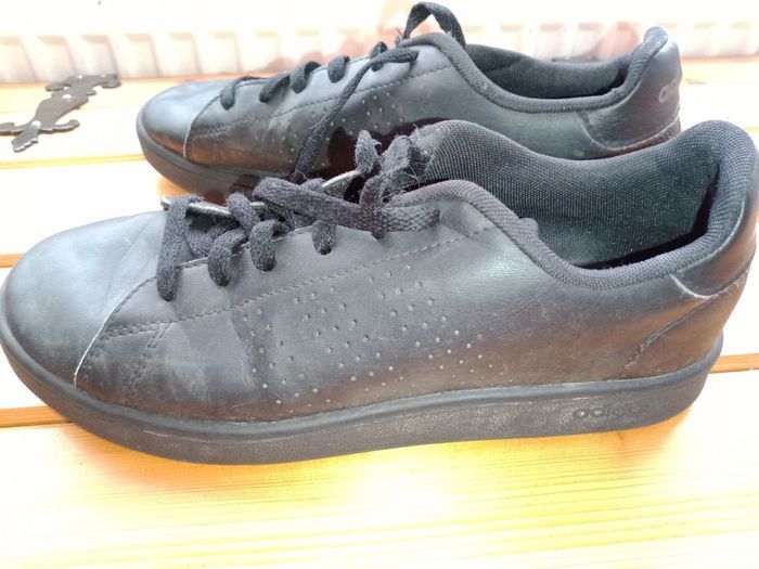 Basket de ville Adidas en TBE p.38 2/3 Quelques traces d'usures mais Trés peu porté Prévoir un petit nettoyage. Noir mixte fille ou garçon.