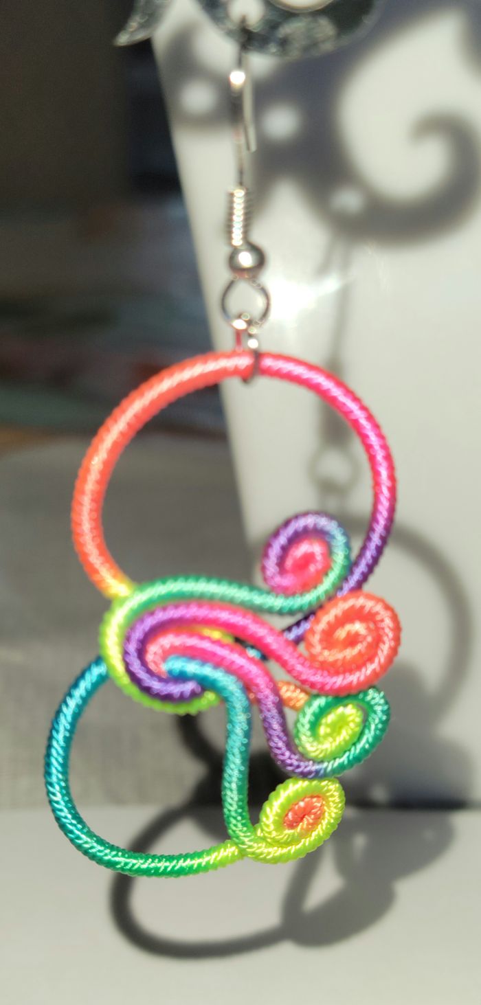 BOUCLES D'OREILLES SPIRALE MULTICOLORE FLUO ! NEUF ! - photo numéro 2