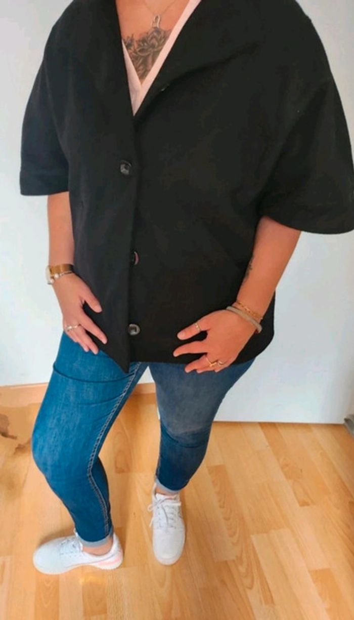 Magnifique Caban noir à manches courtes de marque Tout Simplement et de taille 40