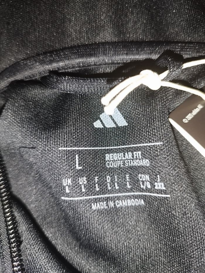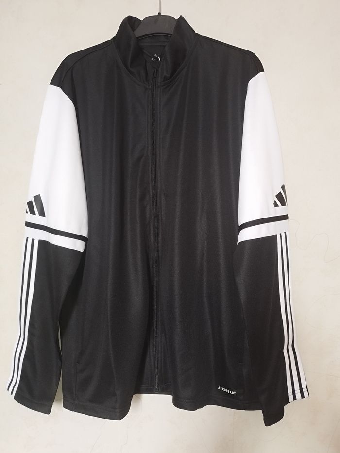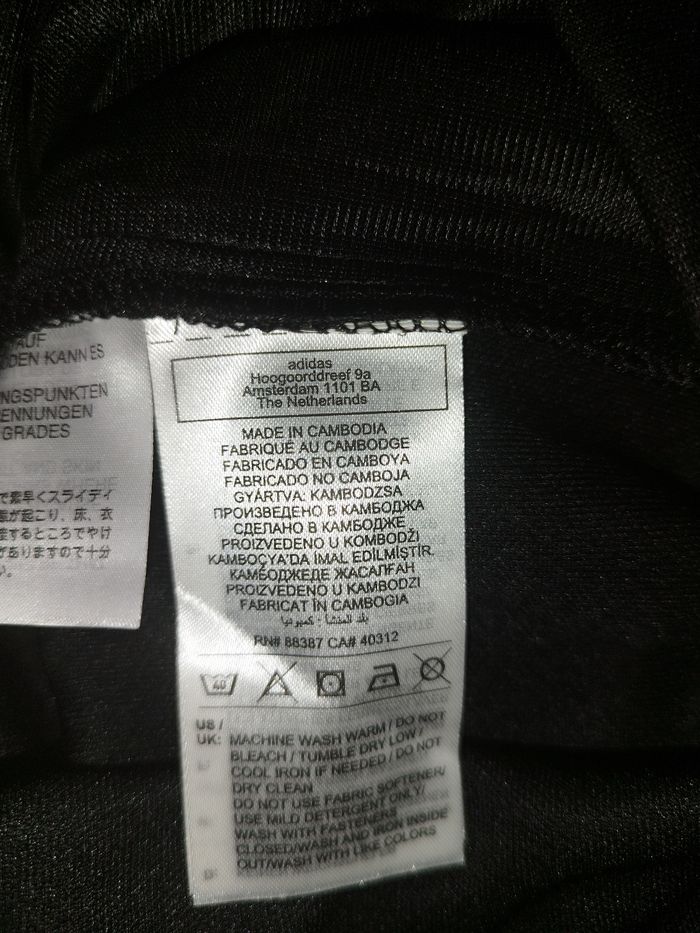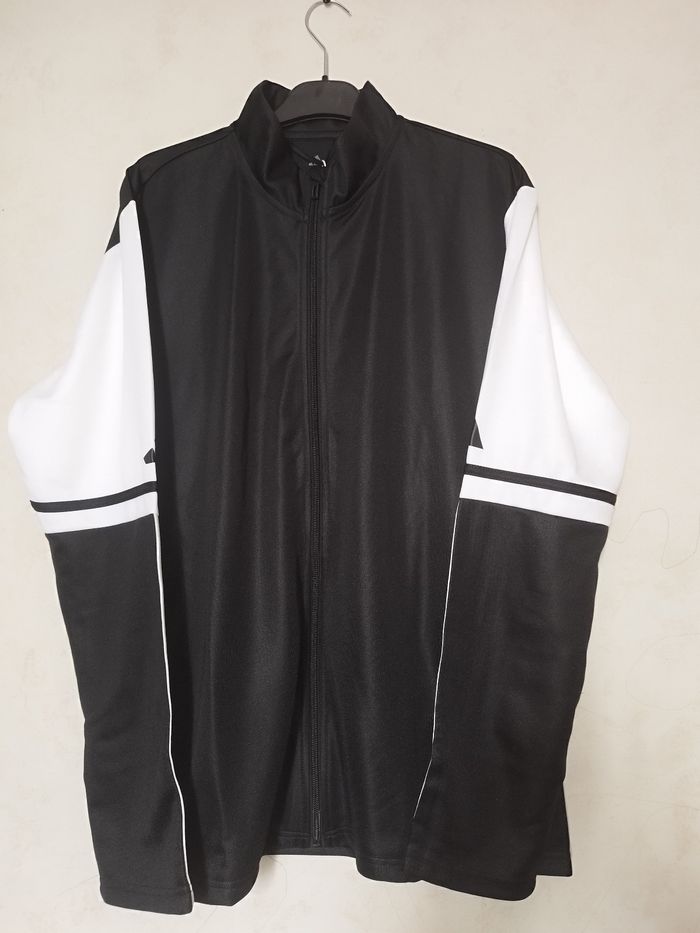 Superbe survêtement noir / blanc, avec ses 2 poches zippées . Taille L, il taille grand et peut convenir à une taille 42 Adidas