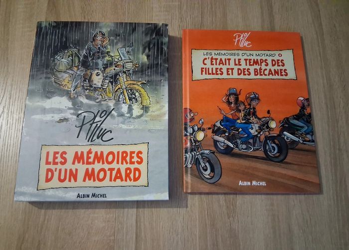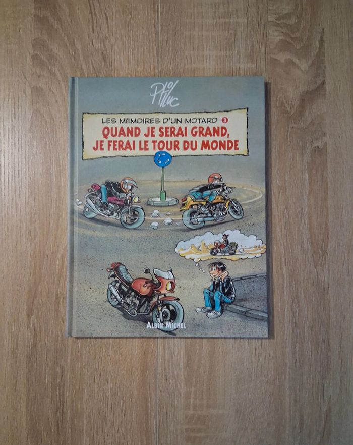 Coffret 3 volumes + tome 4 " Les mémoires d'un motard" Albin Michel " Ptiluc ", -L’histoire du p’tit mec qui voulait une grosse moto. -Pour quelques kilomètres de plus. -Quand je serai grand, je ferai le tour du monde. -C’était le temps des filles et des bécanes. Les livres sont en très bon état, aucun défaut.
