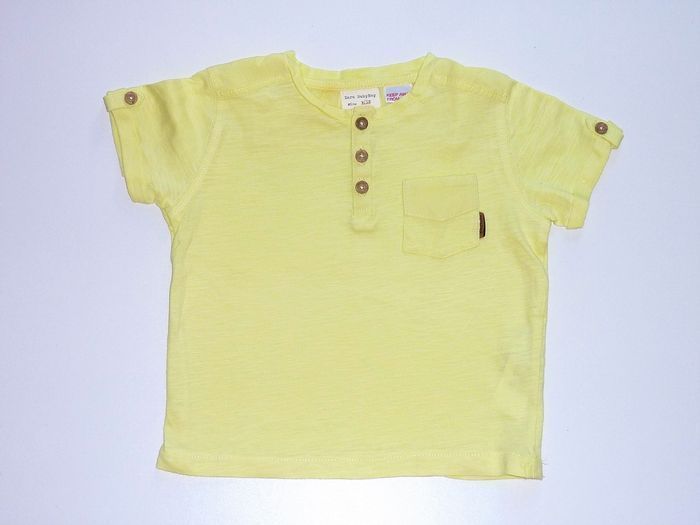 Tee shirt de marque ZARA KIDS. Couleur jaune pastel orné de petits boutons. Excellent état pour cet habit d'occasion.