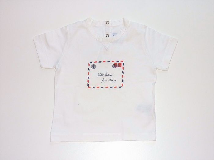 Tee shirt, de marque PETIT BATEAU en état excellent. Blanc orné d'un petit motif devant. Le petit plus ? Un classique chic de la marque !