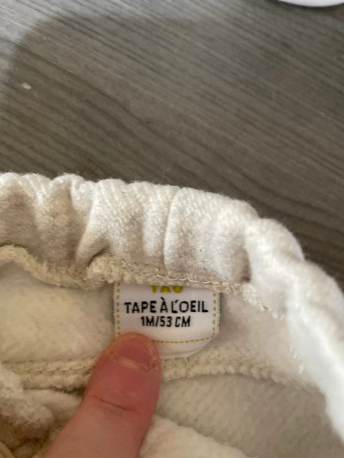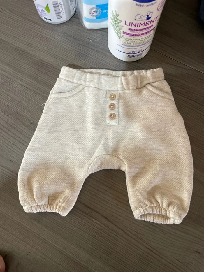 Petit sarouel mixte de couleur beige, Motif sur le derrière.