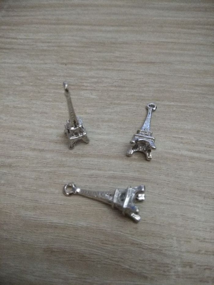 Lot de 3 breloques tour eiffel Lot de 3 breloques pour création de bijoux. En forme de tour eiffel Taille approximative: 24mm x 8mm. Couleur argent. Possibilité d'en acheter plus, contactez-moi.