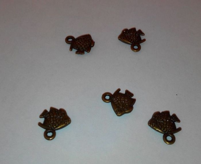 Lot de 7 breloques pour création de bijoux. En forme de poisson. Taille approximative: 10mm x 10mm. Couleur bronze. Possibilité d'en acheter plus, contactez-moi.