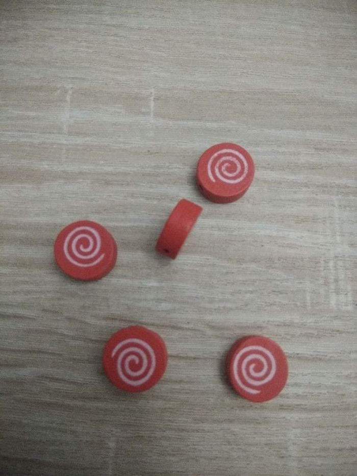 1 lot de 5 perles bois rouge 1 lot de 5 perles bois,rouges Taille de la perle: 15mm de diamètre, 6 mm d'épaissseur Possibilité d'en acheter plusieurs, contactez-moi.