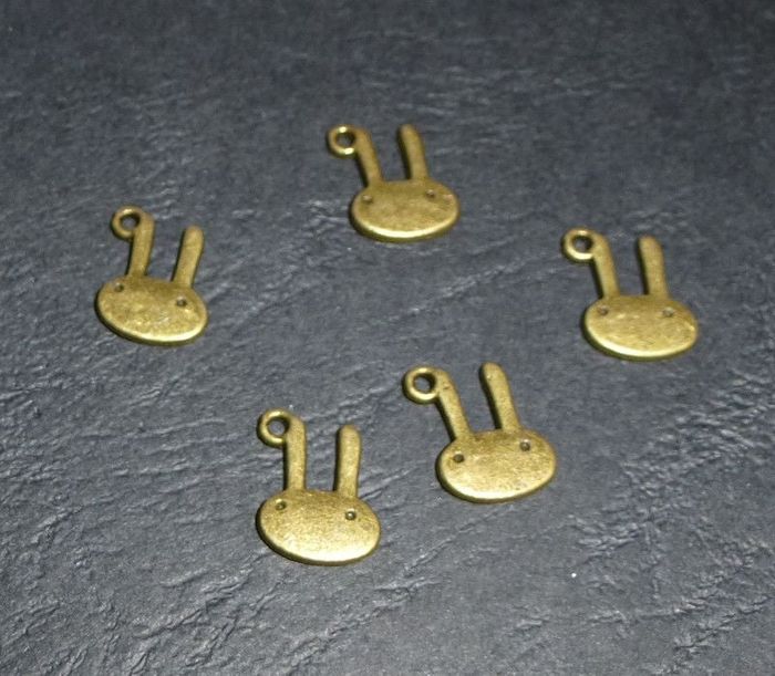 Lot de 5 breloques lapin Lot de 5 breloques pour création de bijoux. En forme de lapin. Taille approximative: 10mm x 13mm. Couleur bronze. Possibilité d'en acheter plus, contactez-moi.