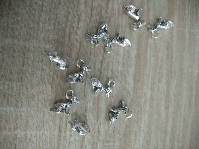 Lot de 2 breloques chien Lot de 2 breloques pour création de bijoux. En forme de chien. Taille approximative: 14mm x 12mm. Couleur argentée. Possibilité d'en acheter plus, contactez-moi.