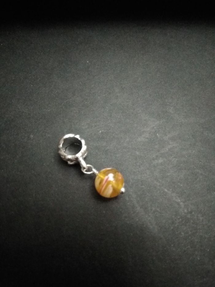 1 pendentif avec boule jaune-orangé. Taille de la boule: 7-8 mm de diamètre environ Possibilité d'en acheter plusieurs, contactez-moi.