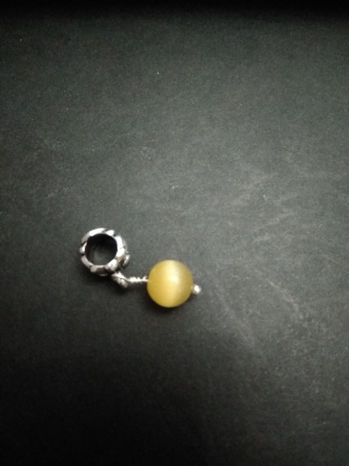 1 pendentif avec boule jaune. Taille de la boule: 7-8 mm de diamètre environ Possibilité d'en acheter plusieurs, contactez-moi.