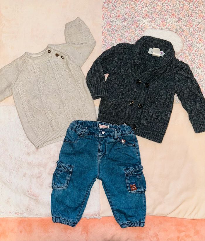 Ensemble de pull & gilet de la marque H&M Jean chaud doublé Du pareil au même Très bon état #mmebarbier54garçon9mois