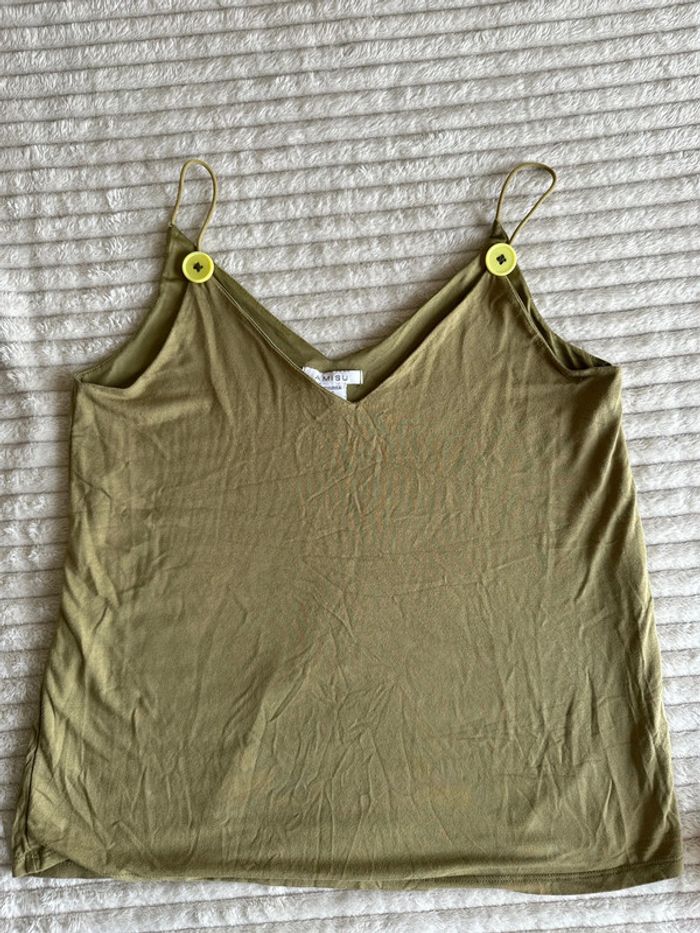 T-shirt kaki à bretelles Les boutons ont été ajoutés par moi pour raccourcir les bretelles mais peuvent être retiré sans problème Taille S #mmebarbier54femmes