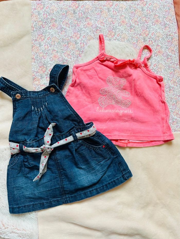 jupe Salopette Obaibi T-shirt à bretelles lulu castagnette En très bon état #mmebarbier54fille6mois