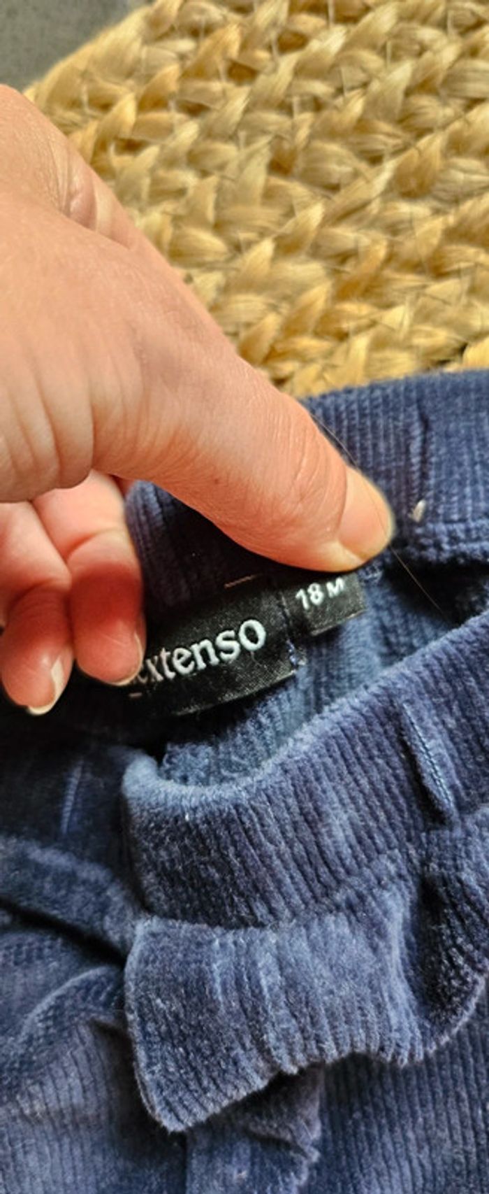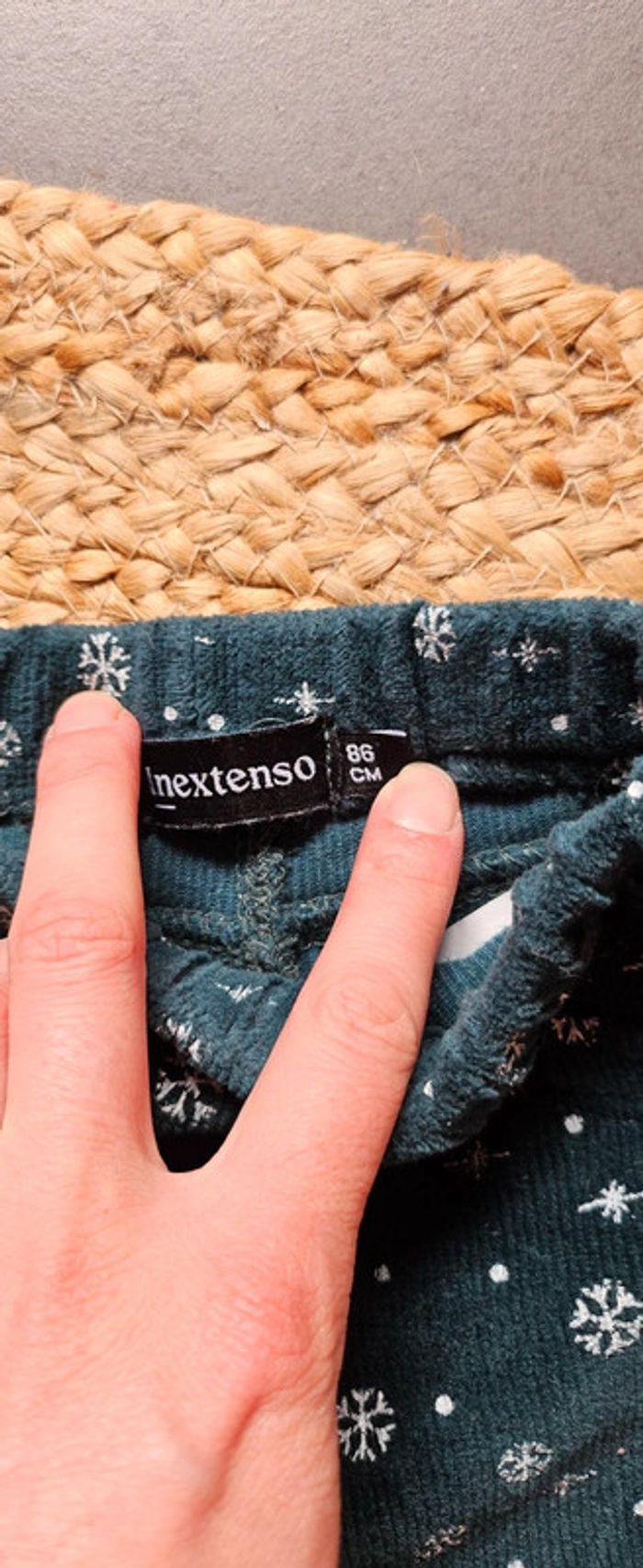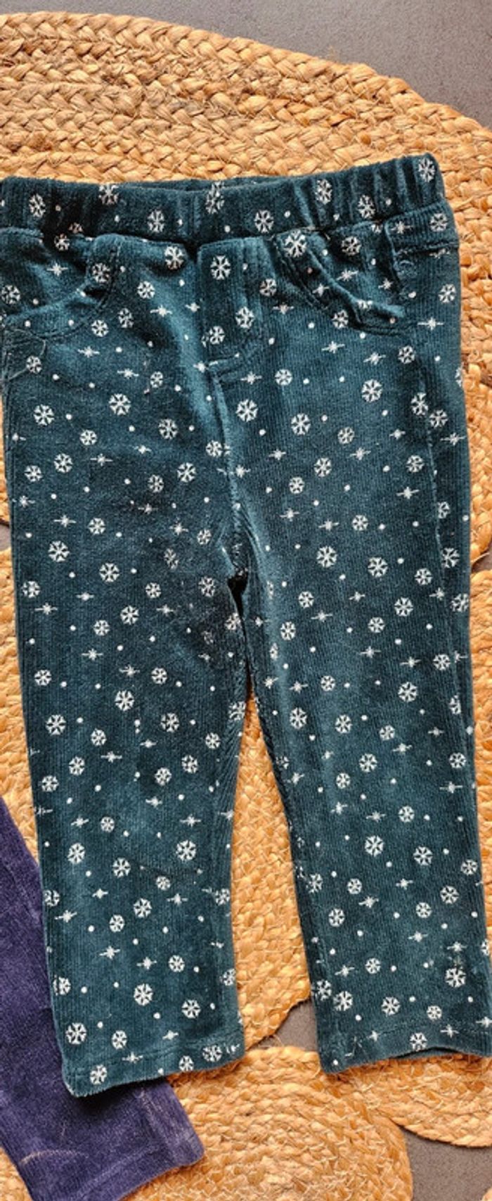Lot de 2 pantalons velours 1 bleu marine 1 vert sapin motif flocons In extenso 18 mois Très bon état (1ere main achat neuf) 2€50 #pantalonvelours #pantalon18moisfille #pantaloninextenso18mois