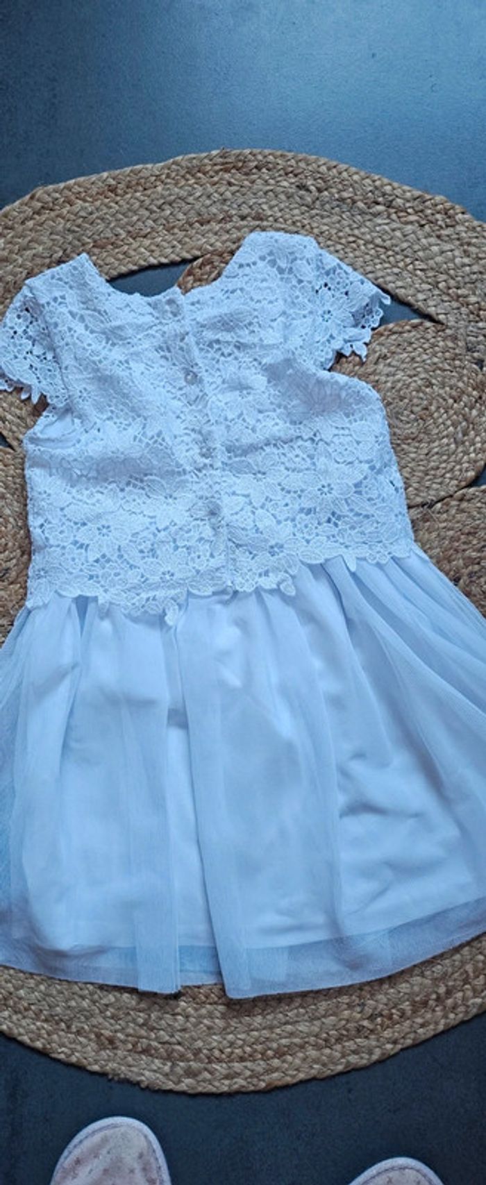 Très belle robe blanche à dentelle fleurs 6ans (taille grand) Gemo En très bon état (tres leger fil tiré photo 5) Robe achetée neuve 5€ #robefille6ans #robegemo6ans #robedentelle6ans