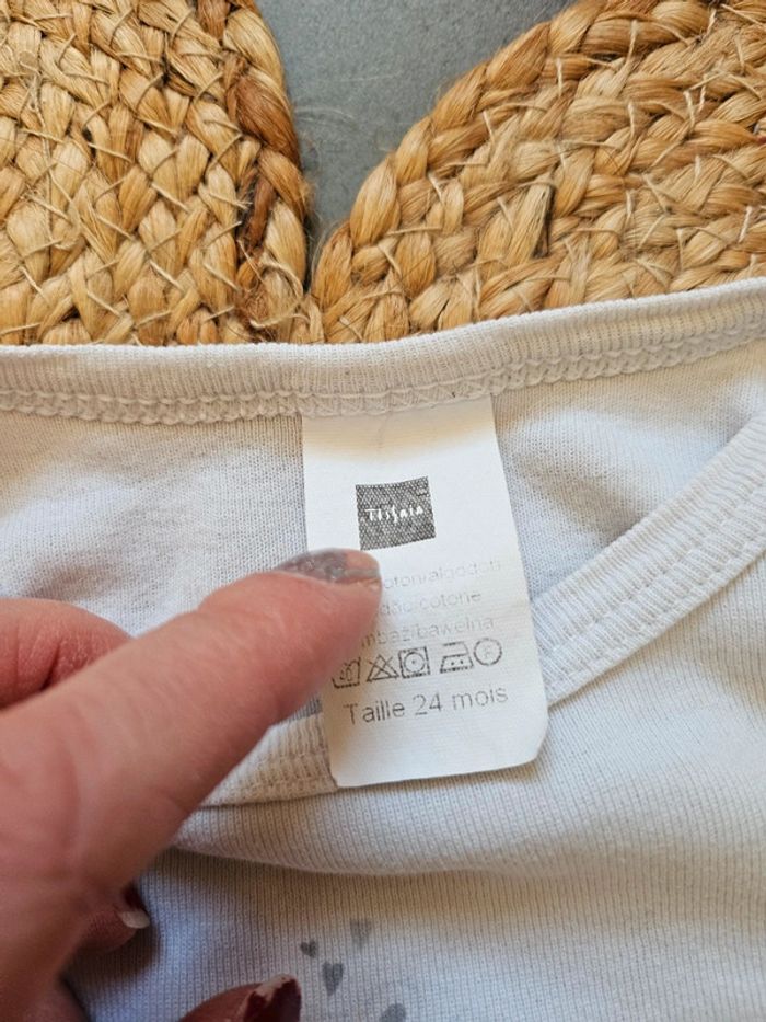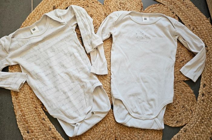 Lot de 2 bodies manches longues Couleur un peu passée, 1 présente qlqs tâches Marque Tissaia Bon etat 1€, #bodiesmancheslongues24moisfille #bodies24moisfille