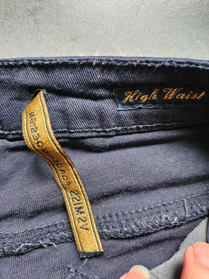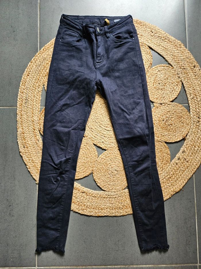 Joli jean bleu marine slim droit (high waist) Taille haute, 34 Effet effiloché dans le bas En très bon état Marque VS miss 4€ #jeandroit34 #jeanslim34femme