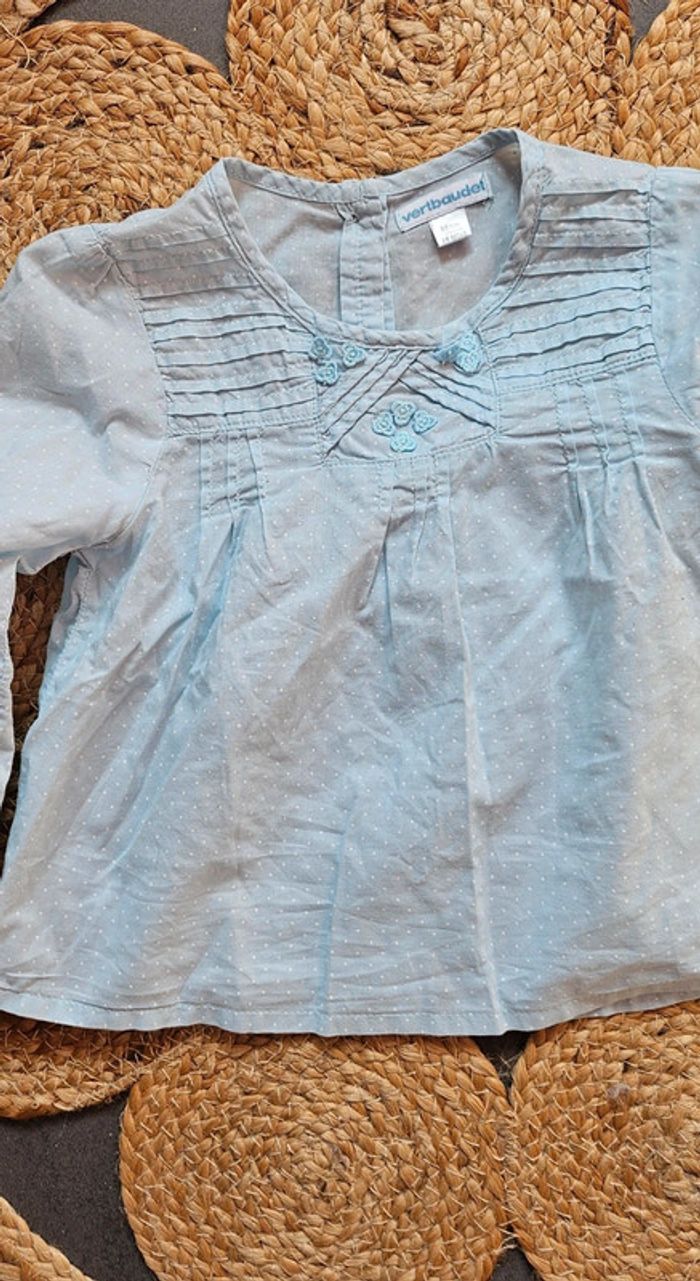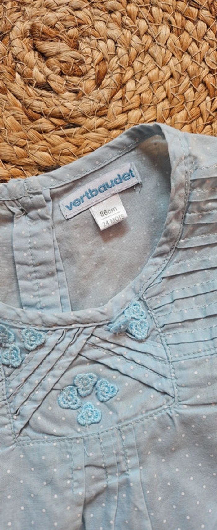 Très belle blouse bleu clair pois blancs Boutons dans le dos 24 mois Vertbaudet Très bon état 2€ #blouse24moisfille #blousevertbaudet #blousevertbaudetfille24mois