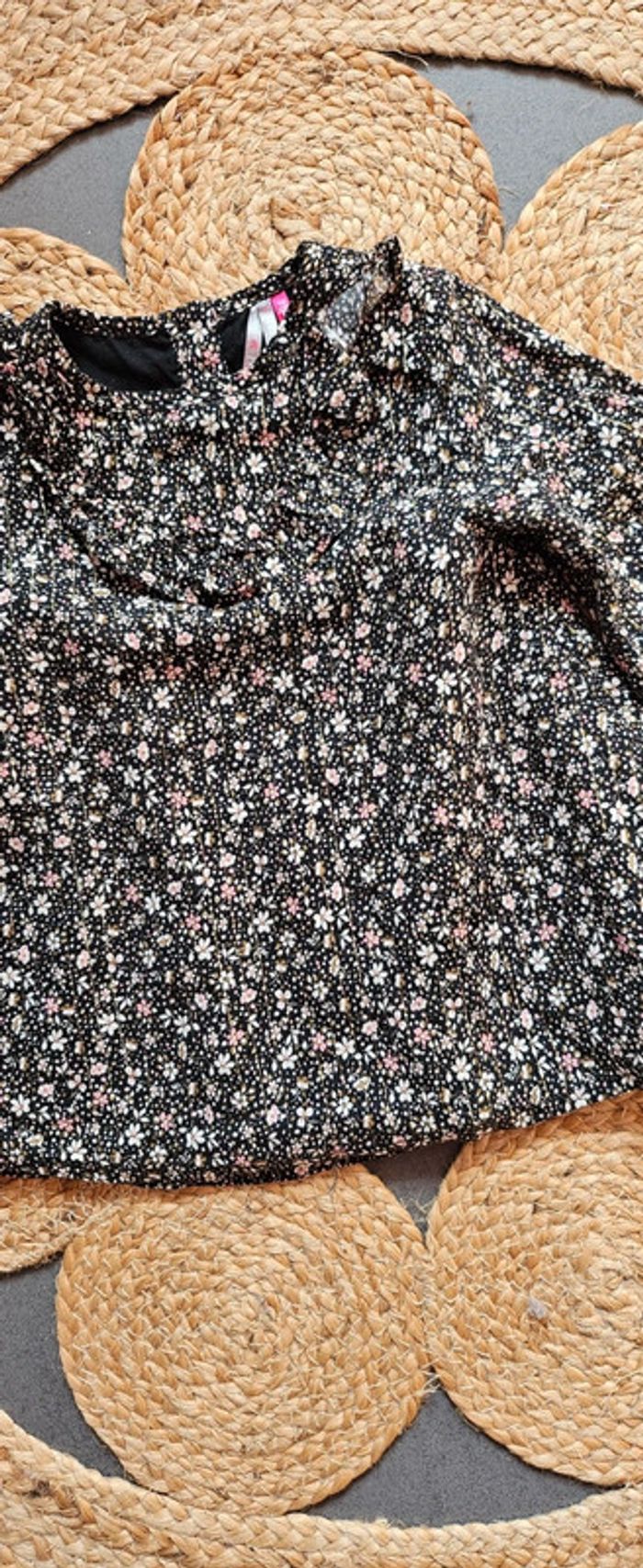 Très belle blouse noire à fleurs colorées Boutons dans le dos 18 mois Orchestra Très bon état 2€ #blouseorchestra18mois #blousefille18mois