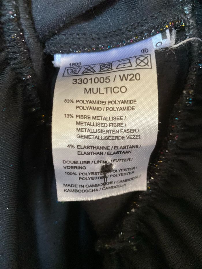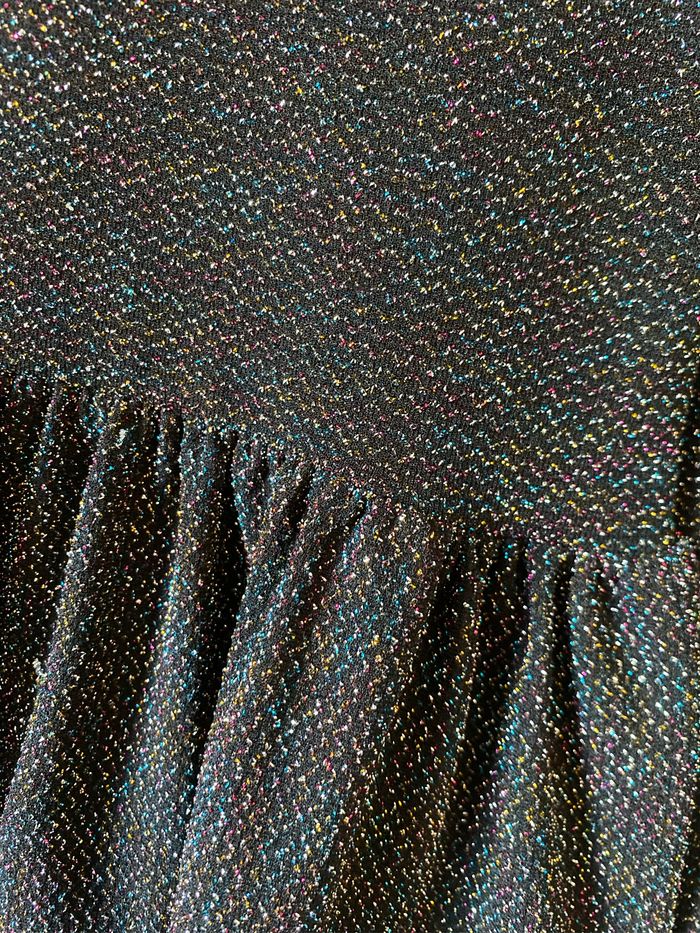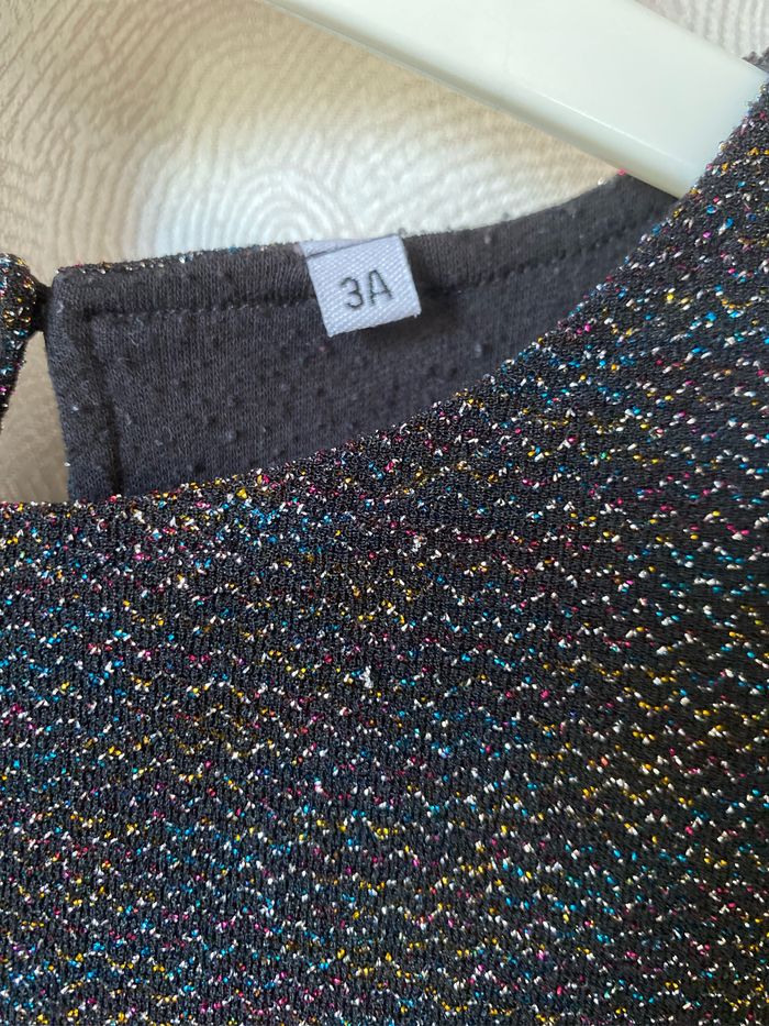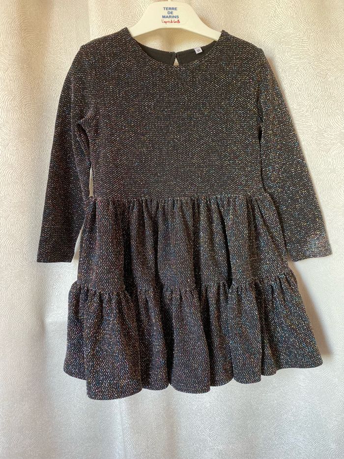 Robe qui tourne noire scintillante multicolore 2 volants Manches longues Taille 3 ans 83 % polyamide, 13 % fibres métallisé 4 % élasthane