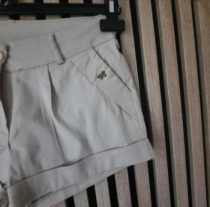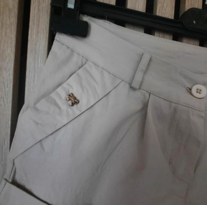Short coton et élasthane 2 poches sur les côtés avec un petit nœud doré Longueur 28 cm N hésitez pas à visiter mon profil et laissez vous guider par mes différents # #clementine13430femmest40 #shortbeige40
