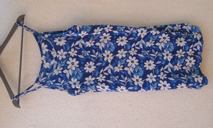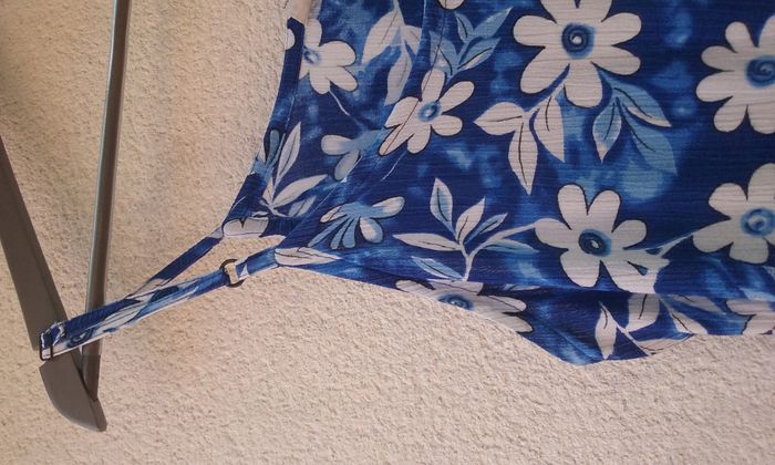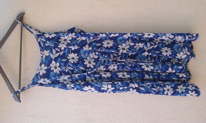 Très jolie robe d'été, jolis motifs et jolies couleurs, légère et agréable à porter, bretelles réglables, cordon de serrage au dos.