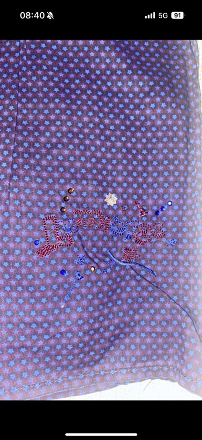 Très jolie jupe de la marque Sergent Major, taille 12 ans (150 cm). Motif étoilé violet et bleu, broderie Taille : 12 ans Couleurs : violet, bleu Détails : broderie + sequins Très bon état Réduction si lot #amandinefille12ans