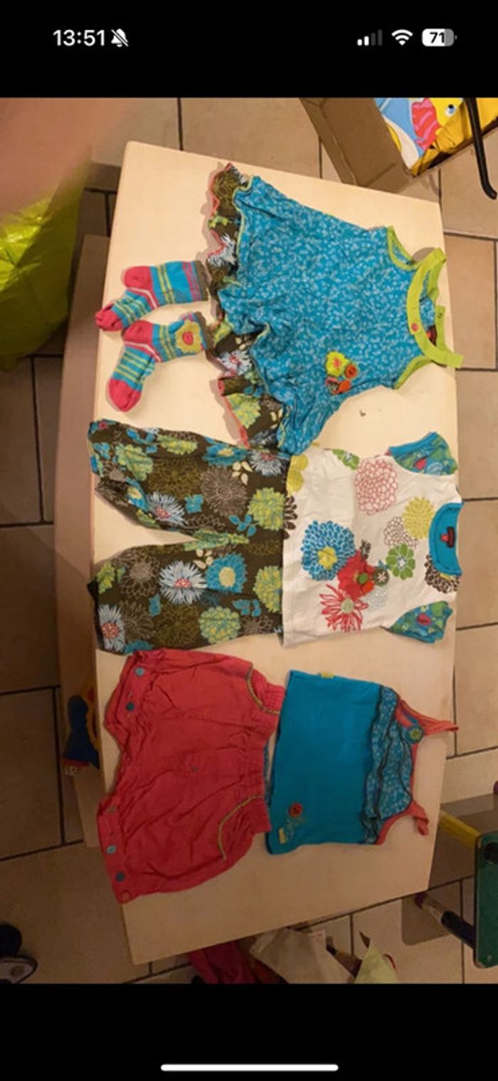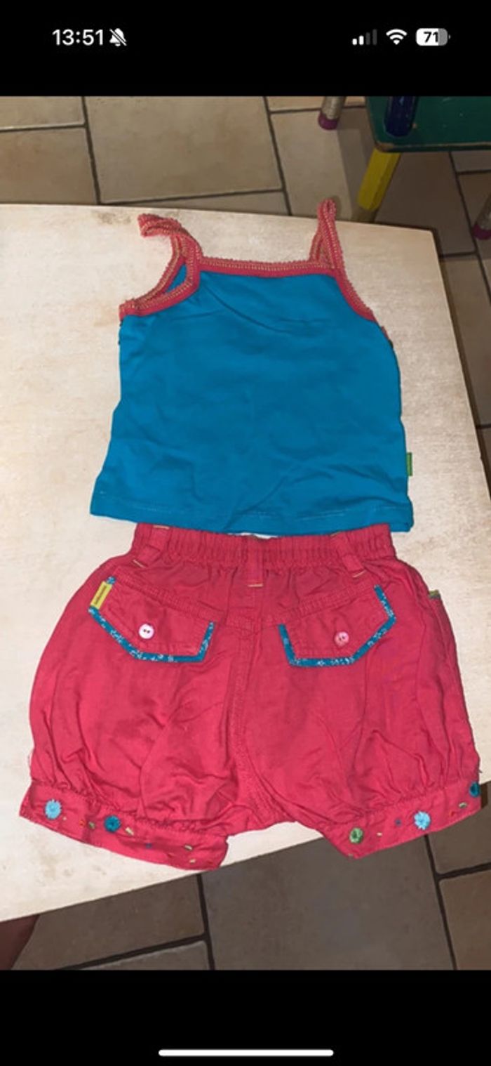 Lots d’Ensemble Catimini 18 mois Marron, bleu et rose -T-shirt -Debardeur -Short -Robe -Pantalon -Chausettes Très bon état #amandinefille18mois