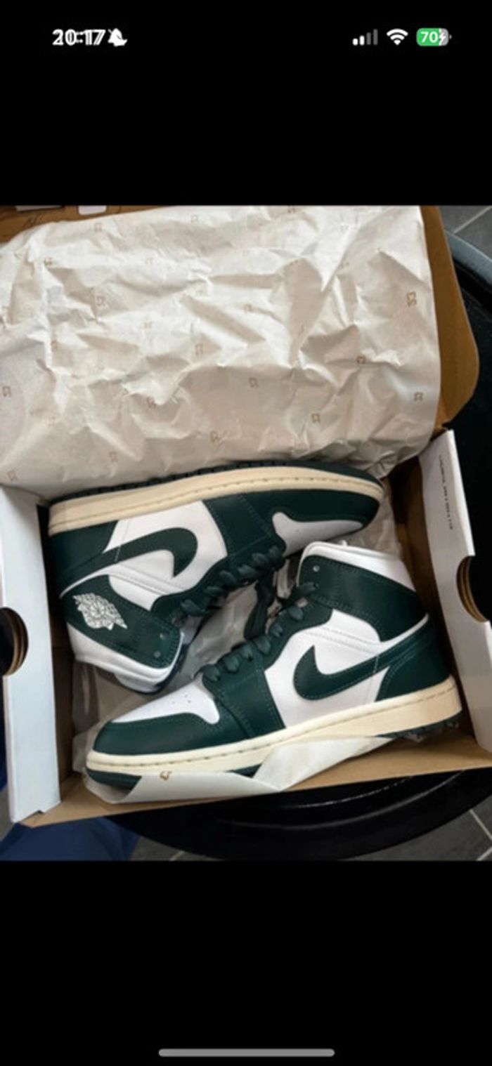 WMNS AIR JORDAN 1 MID Blanc, Voile Vert oxide Neuves Je les vends car je me suis trompé de taille Taille 38 #amandinefemmechaussures