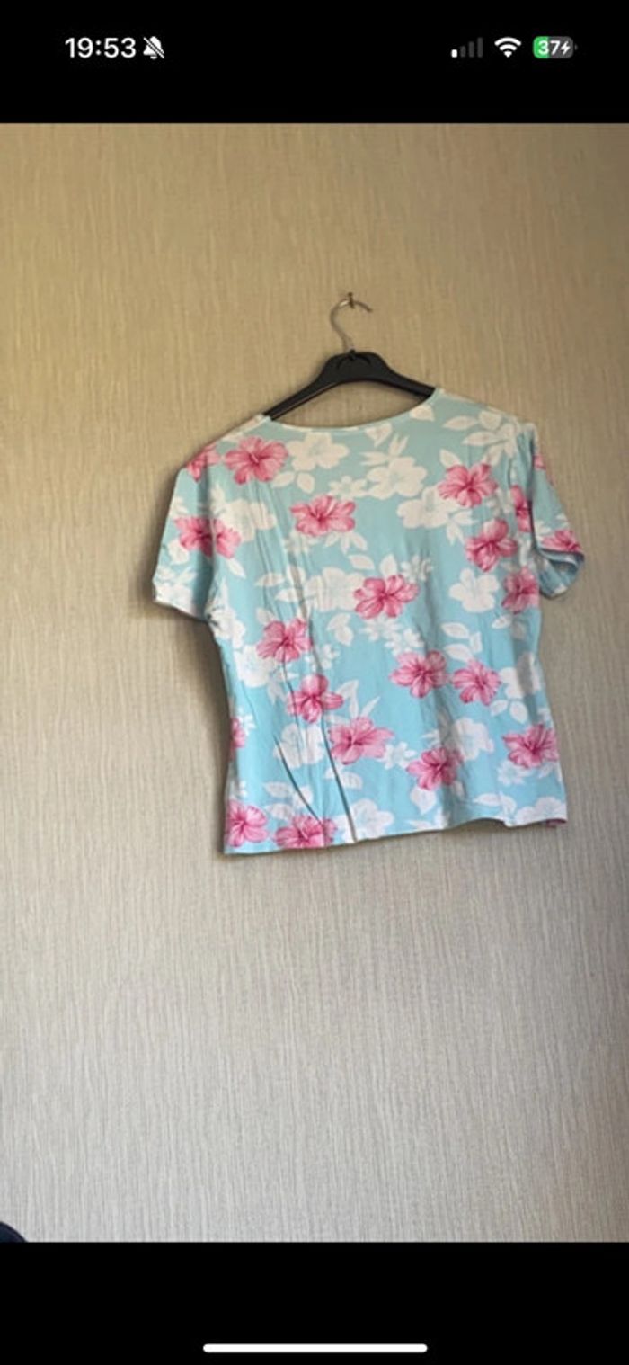 T-shirt bleu et rose avec fleurs Carlo Vialli Taille 46 - photo numéro 2