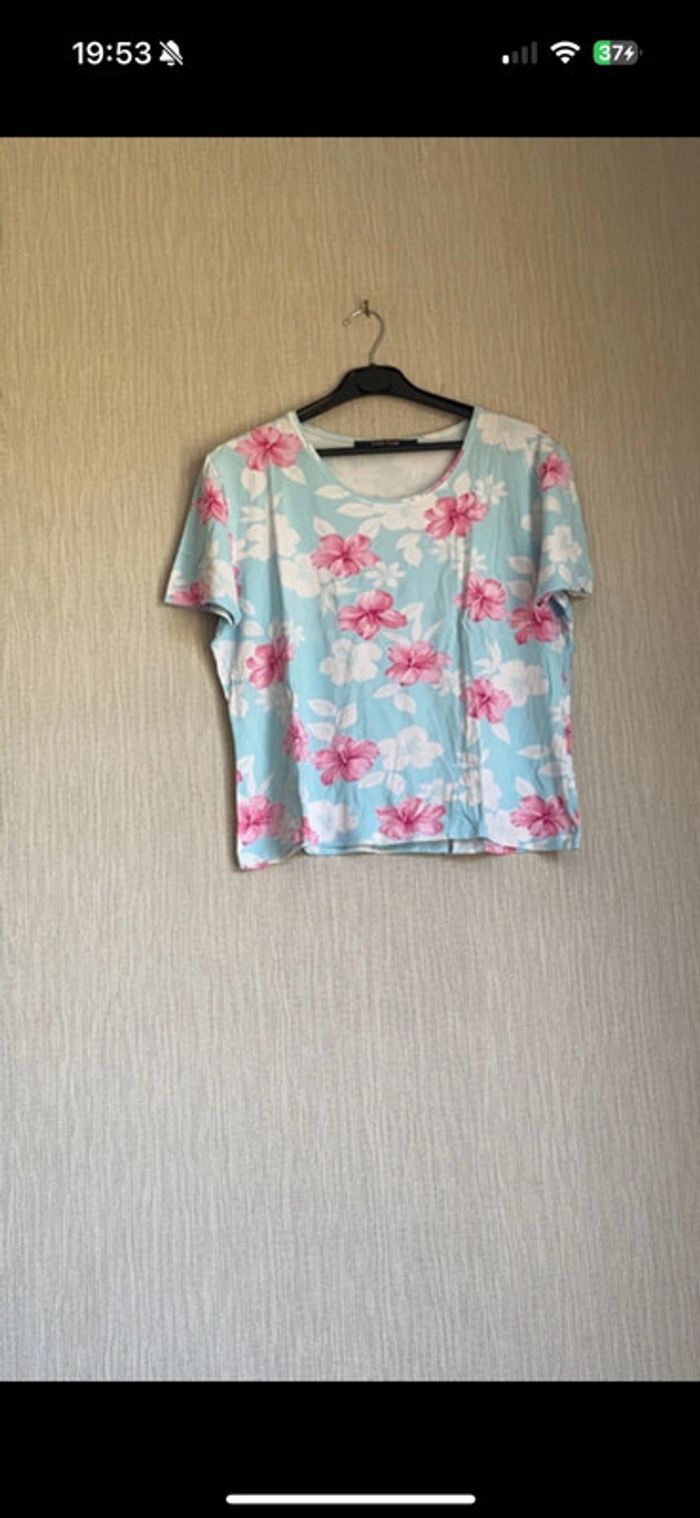 T-shirt bleu et rose avec fleurs Carlo Vialli Taille 46 Très bon état Réduction si lot #amandinefemmexi