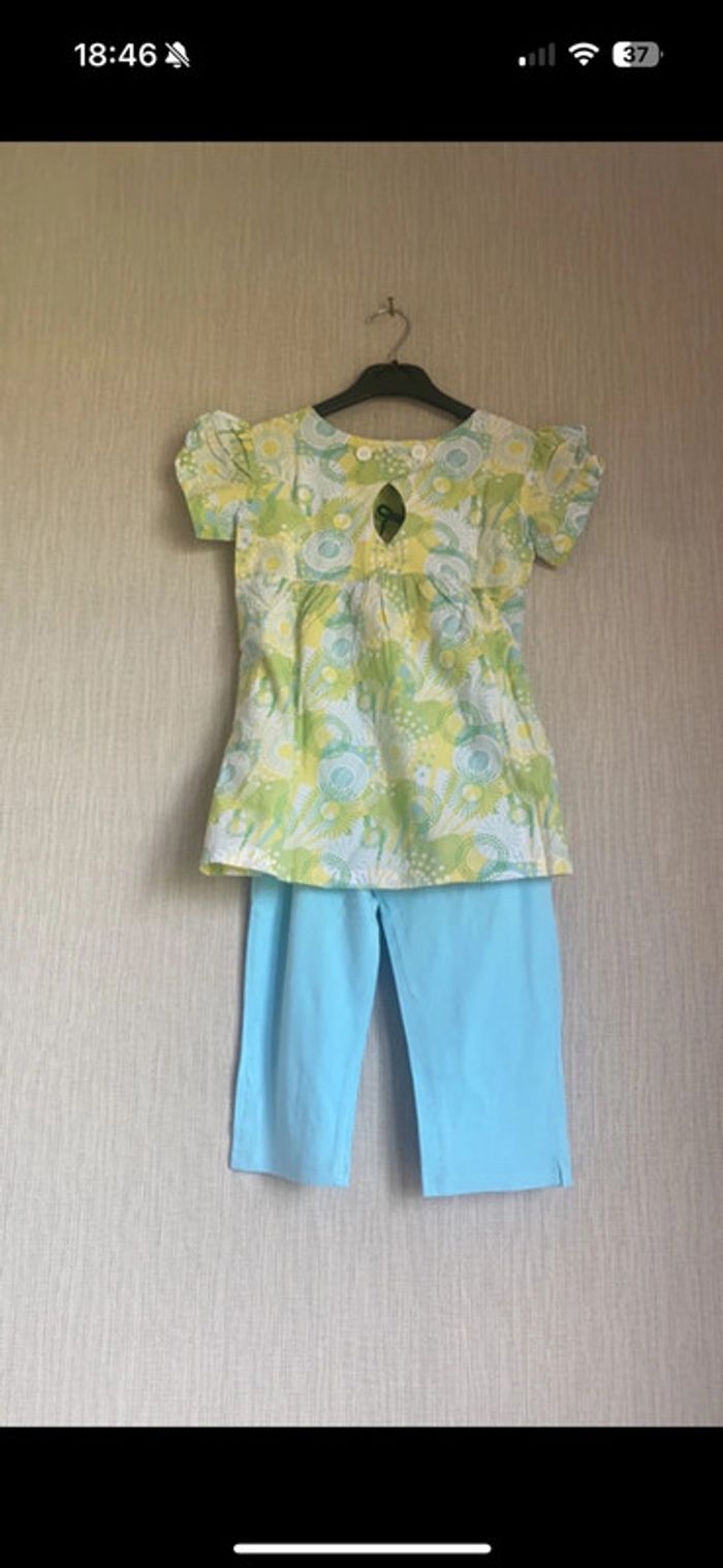 Ensemble bleu vert -Tunique Vert, jaune et bleu Taille 10 ans La Halle en tres bon etat -Legging bleu Tex avec petite tache Taille 9/10 ans #amandinefille9ans #amandinefille10ans