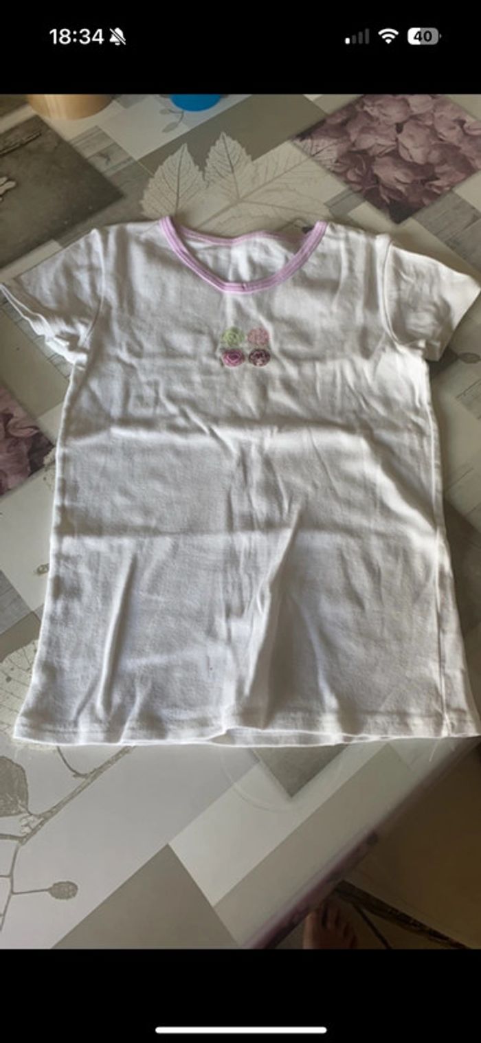 Maillot de corps blanc liserés rose Très bon état 10 ans Réduction si lot #amandinefille10ans