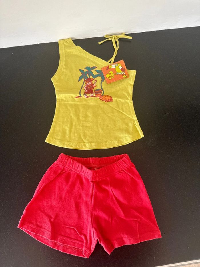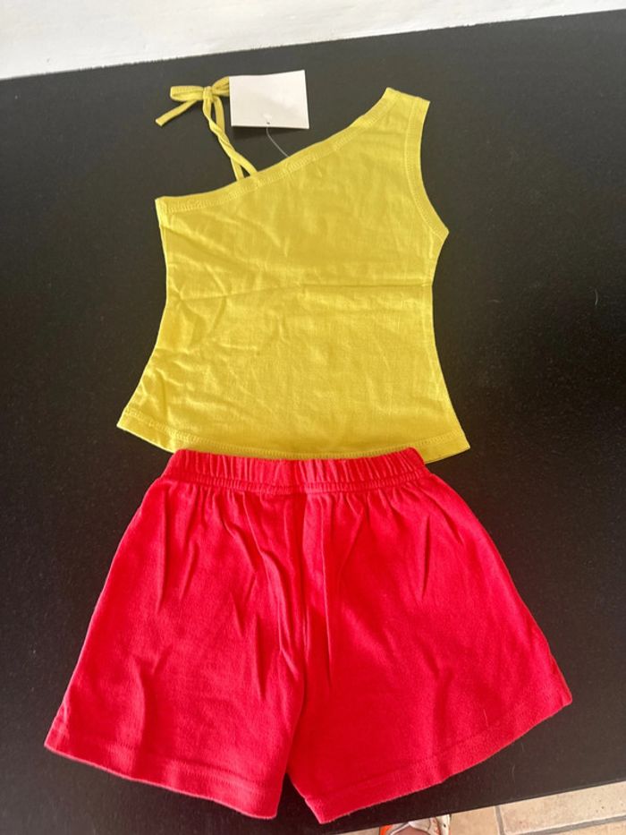 Ensemble 4 ans Rouge et vert Débardeur + short Le haut est neuf avec étiquette Le bas est en tres bon etat Réduction si lot #amandinefille4ans