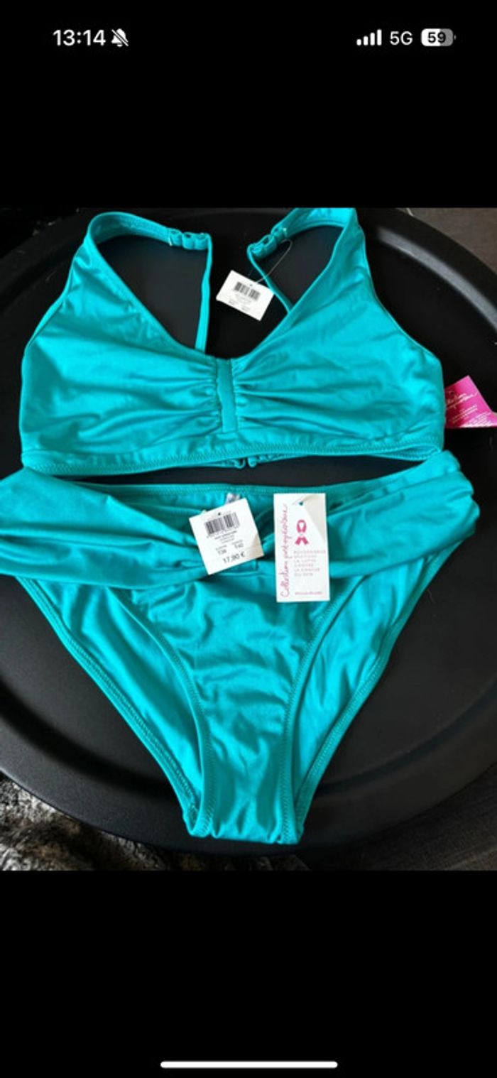 Maillot de bain 2 pièces Rougegorge Post-opératoire Soutien-gorge Taille 95C (france) Culotte Taille 40 (france) Couleur bleu turquoise Neuf avec étiquette