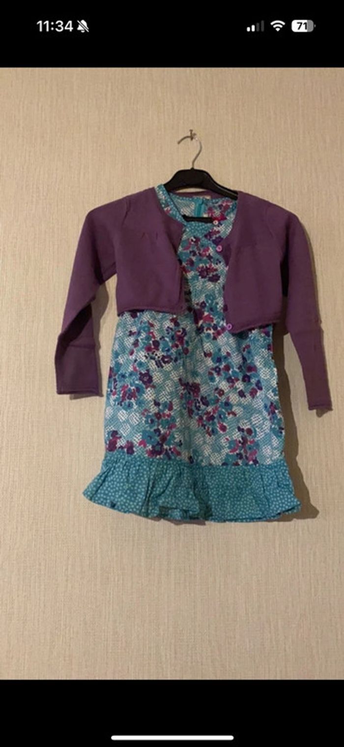 Ensemble Orchestra avec une robe accompagné de son gilet violet Excellent état #amandinefille6ans