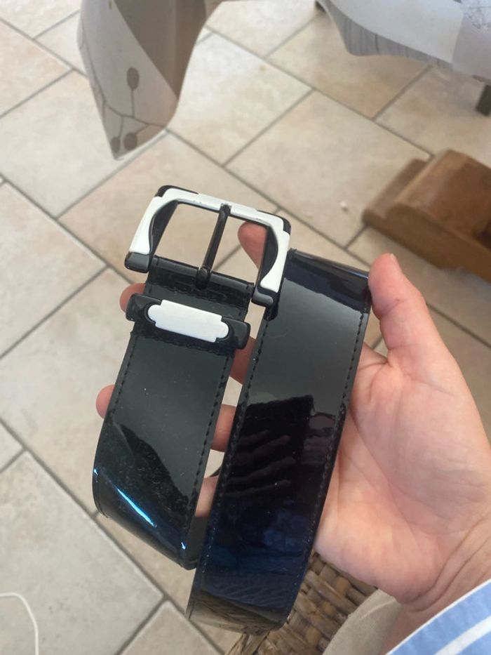 Ceinture noir Boucle noire et blanche Tour de taille de 77 a 90 cm