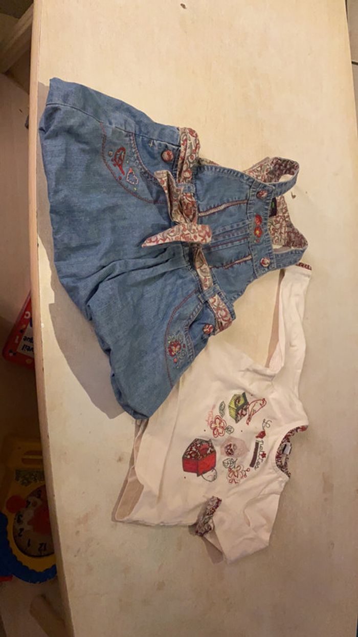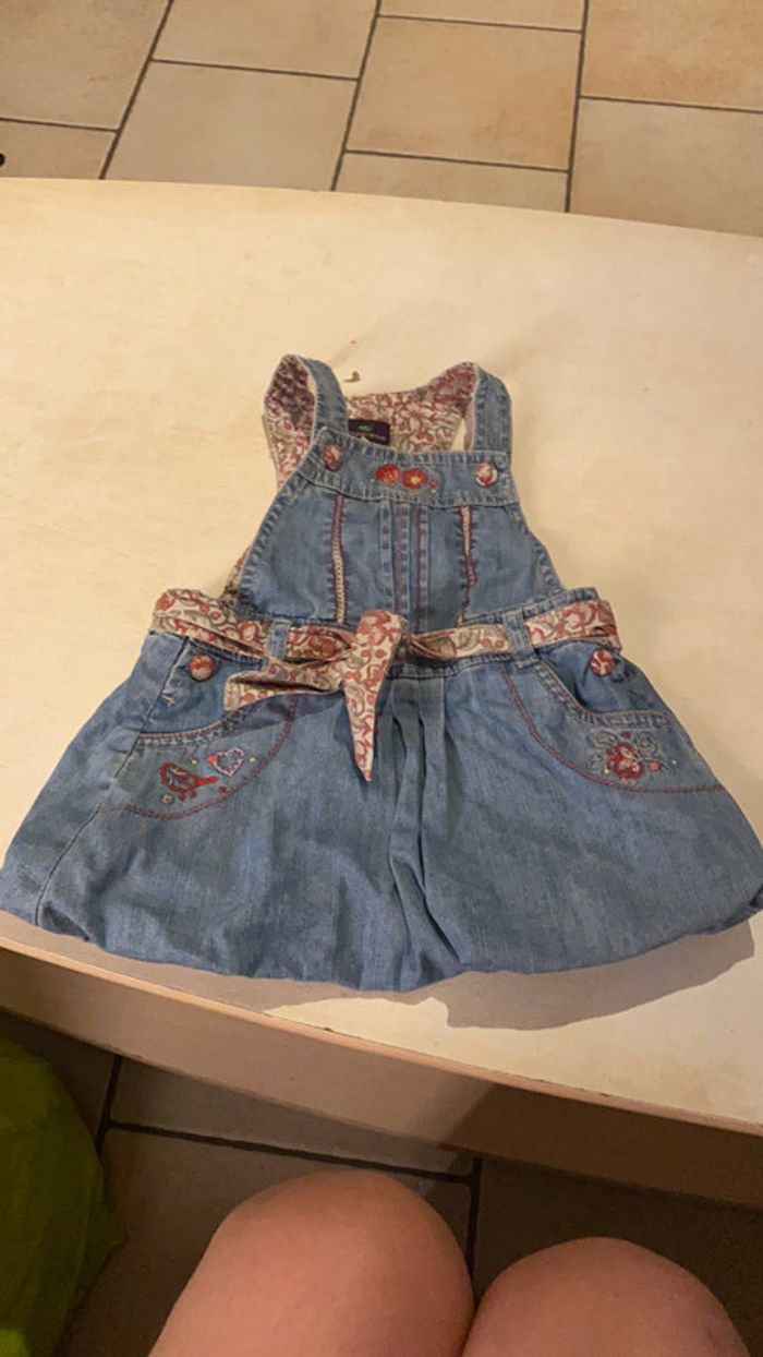 Ensemble Sergent Major 9 mois Très bon état -Robe salopette en jean -T-shirt manches longues #amandinefille9mois