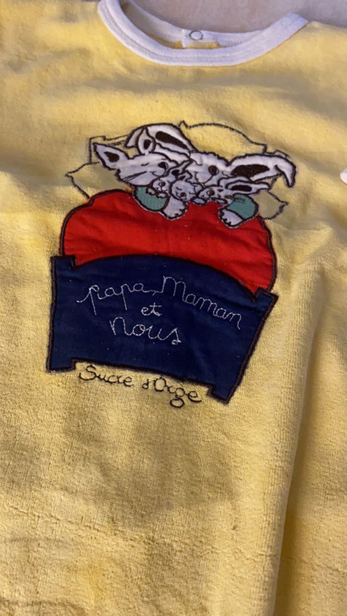 Pyjama jaune Sucre d’orge Papa, maman et nous Taille 12 mois #amandinefille12mois