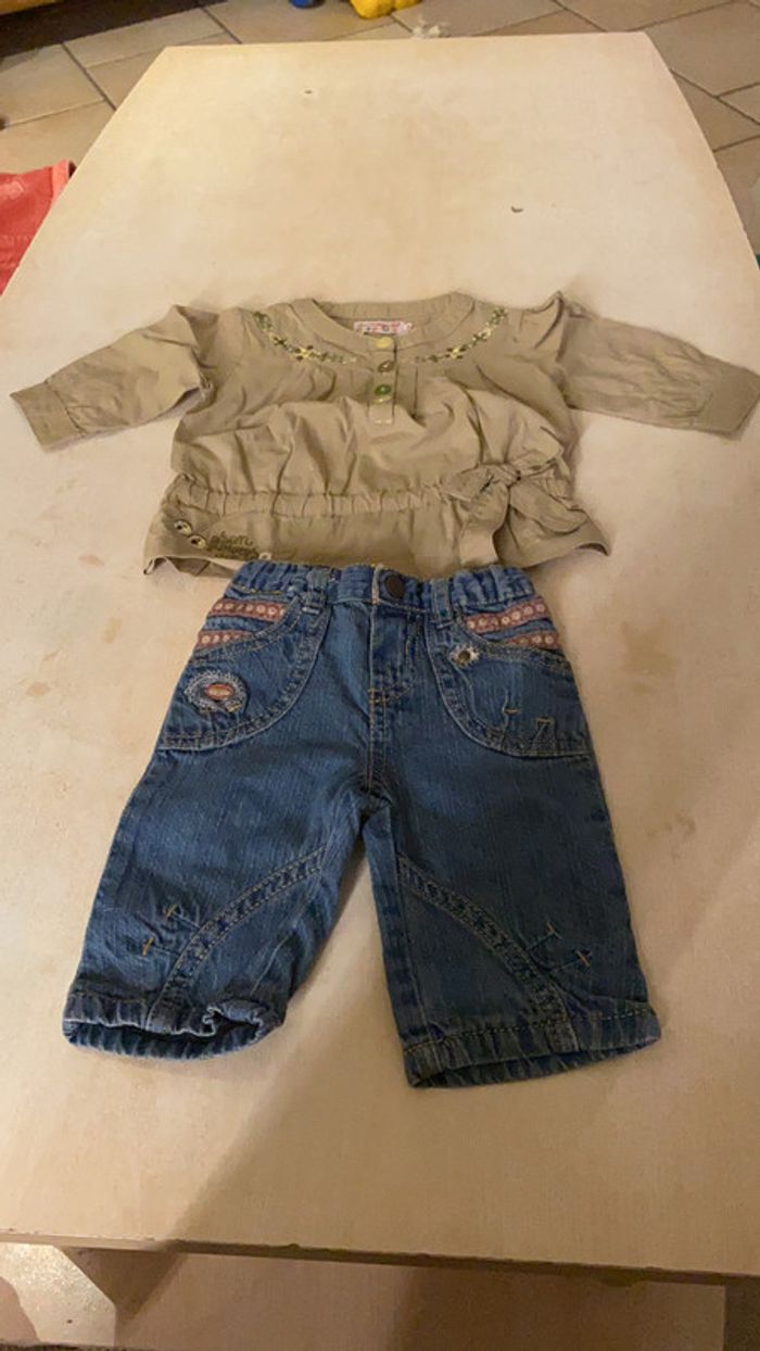 Ensemble la compagnie des petits -T-shirt manches longues -Pantalon en jean Taille 3 mois Très bon état #amandinefille3mois