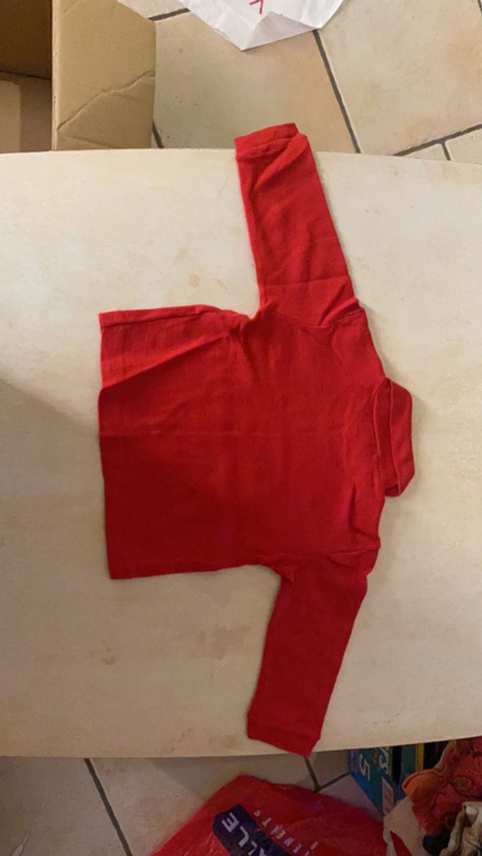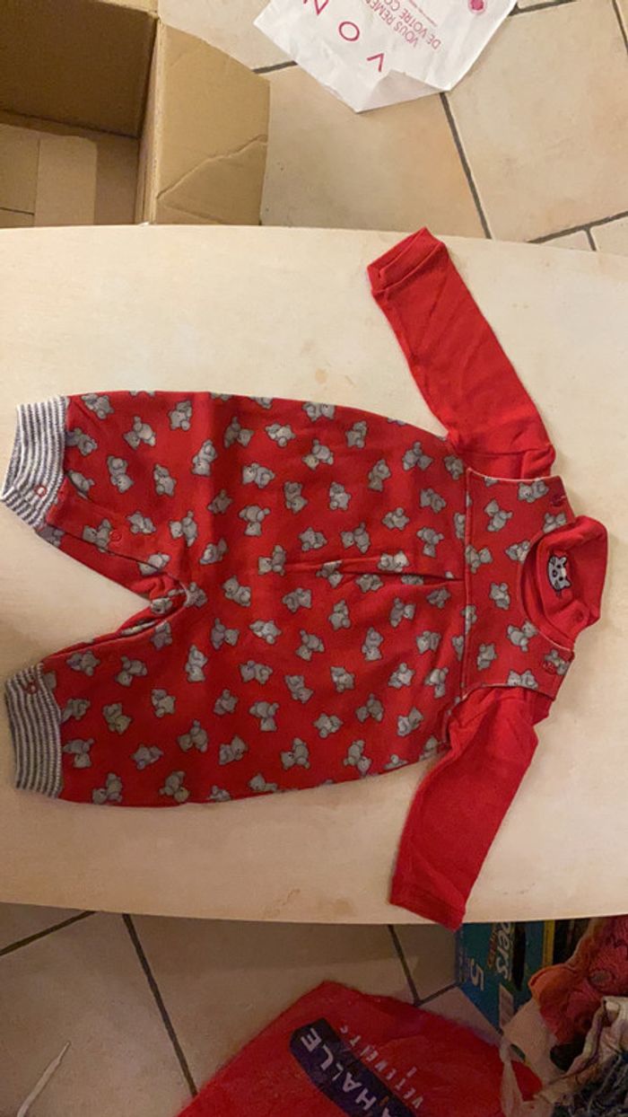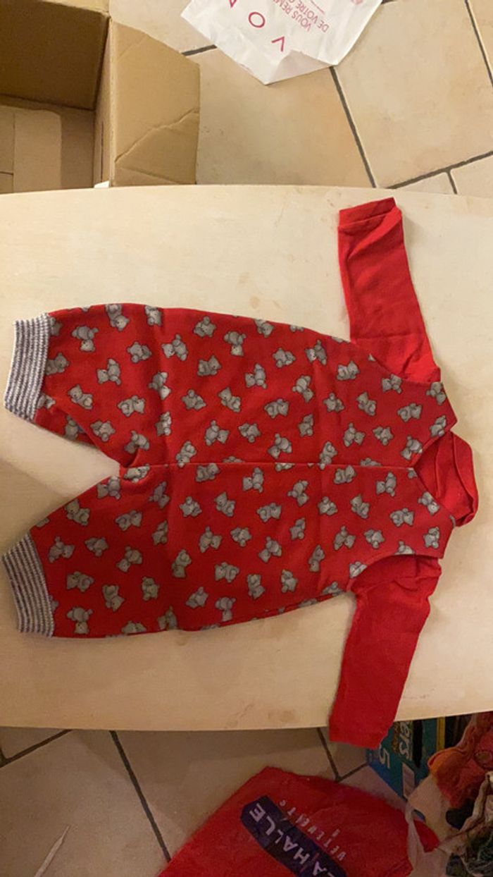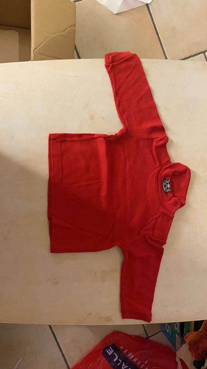 Ensemble rouge -Grenouillere Souriss’oh -T-shirt manches longues col roulé / Sous-pull Tissaia (quelques bouloches) Taille 3 mois #amandinefille3mois