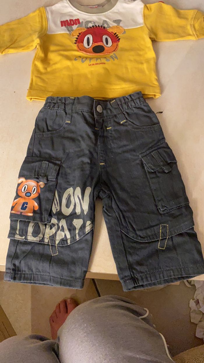 Ensemble la compagnie des petits -Pantalon -T-shirt ( un peu de bouloches au col) 3 mois #amandinegarcon3mois