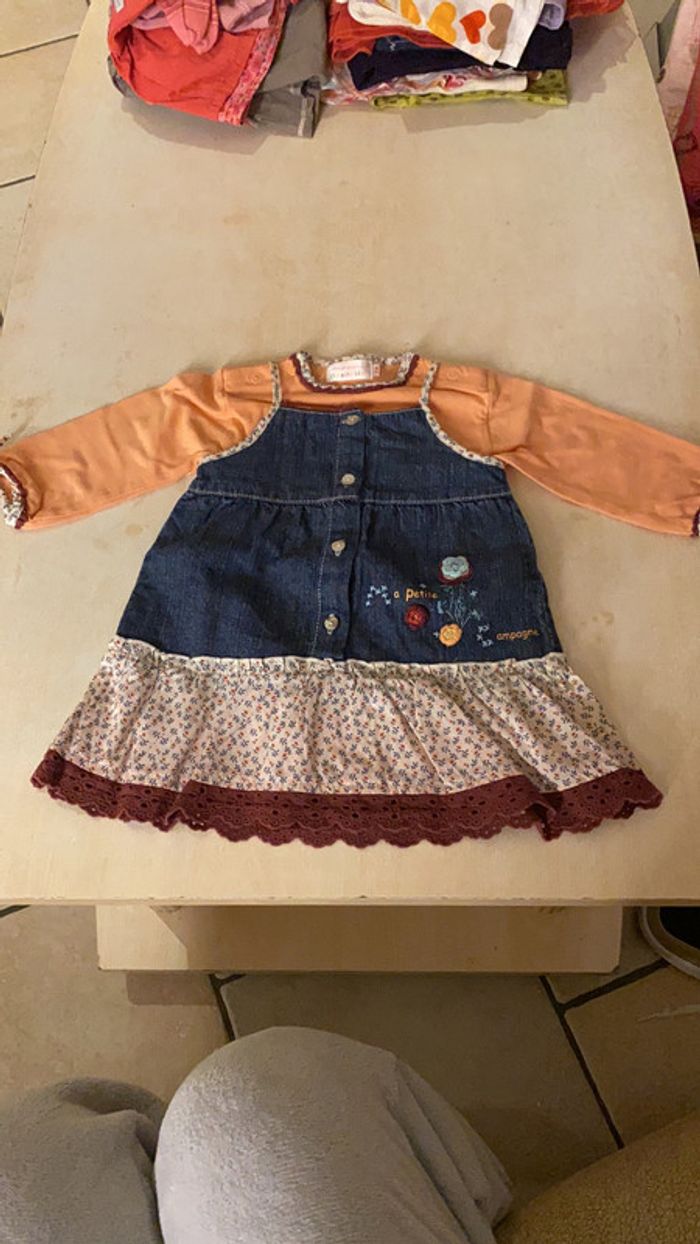 Ensemble La Compagnie des Petits -Robe en jean -T-shirt manches longues Taille 6 mois Très bon état #amandinefille6mois