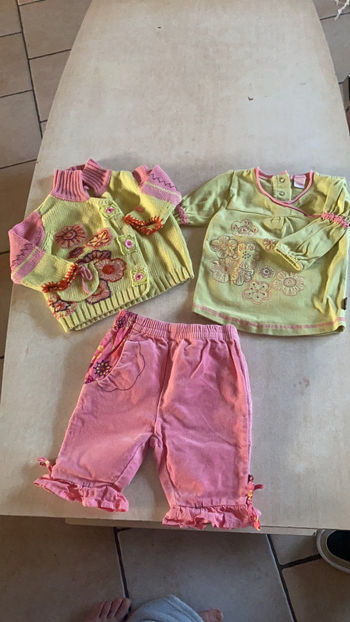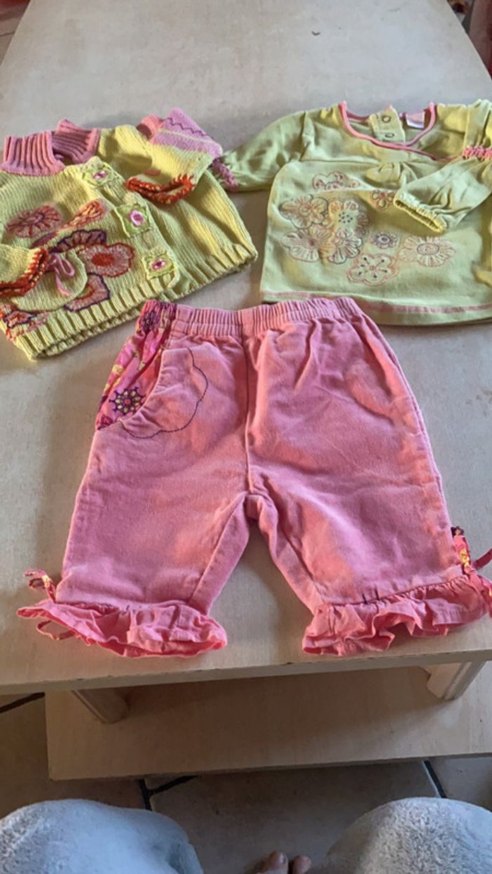 Ensemble Orchestra -Pantalon rose - T-shirt vert longues manches - Gilet vert et rose Taille 6 mois Très bon état #amandinefille6mois