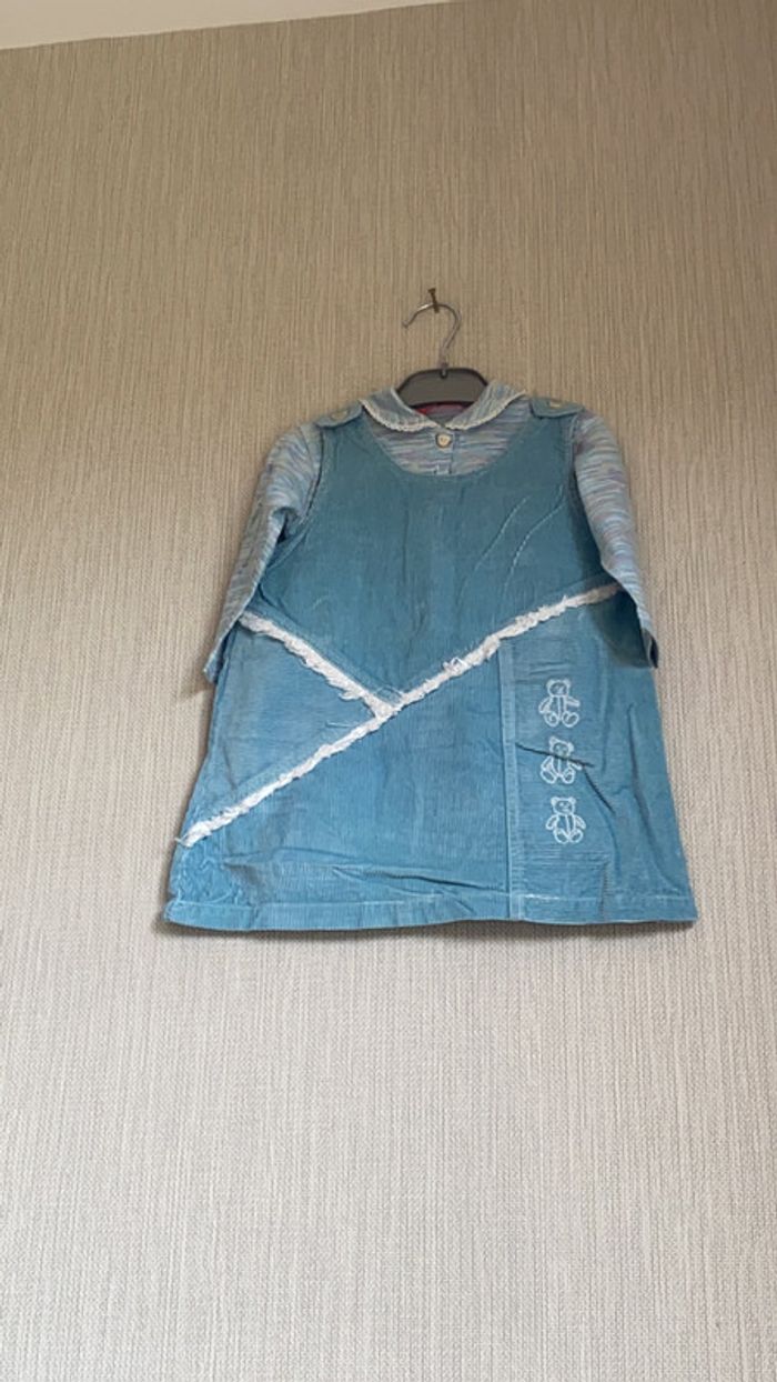 Ensemble Tissaia - Robe bleu -Sous-pull / T-shirt manches longues Taille 2 ans #amandinefille2ans