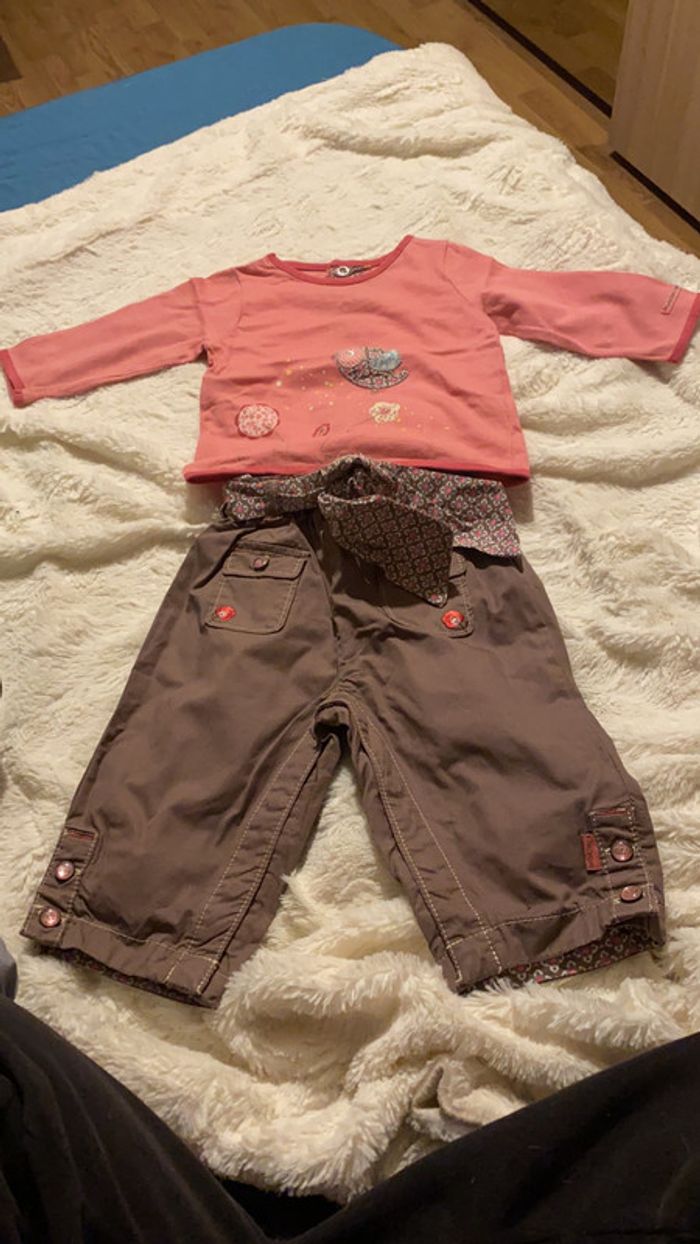 Ensemble Sergent Major Bébé fille 6 mois -Pantalon marron -T-shirt manches longues rose Très bon état #amandinefille6mois