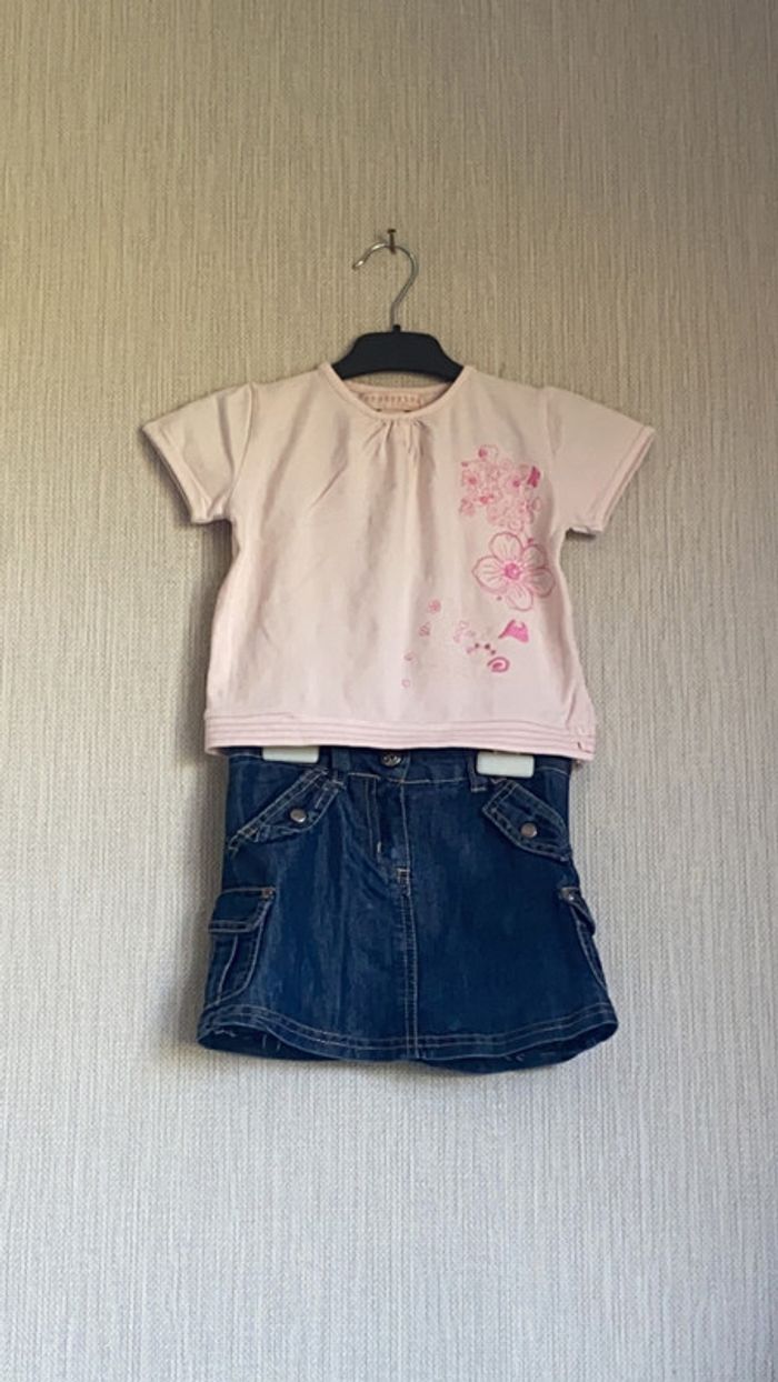 Ensemble Orchestra -Jupe en jean -T-shirt rose manches Taille 3 ans Très bon état #amandinefille3ans