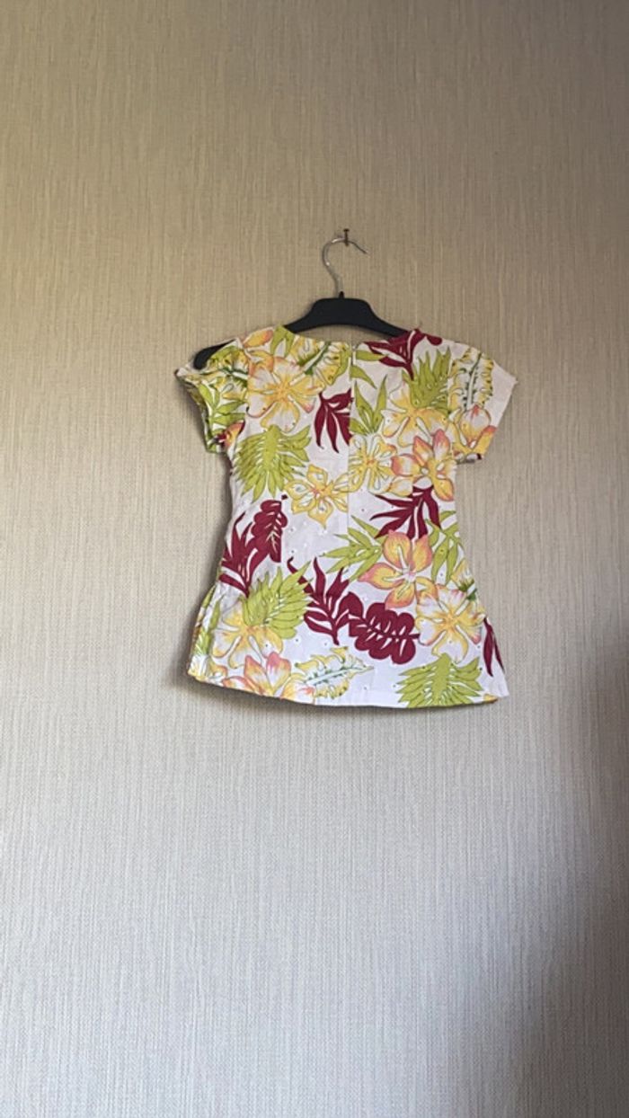 Tunique blanche avec fleurs et feuilles de différentes couleurs Orchestra Taille 3 ans Très bon état #amandinefille3ans