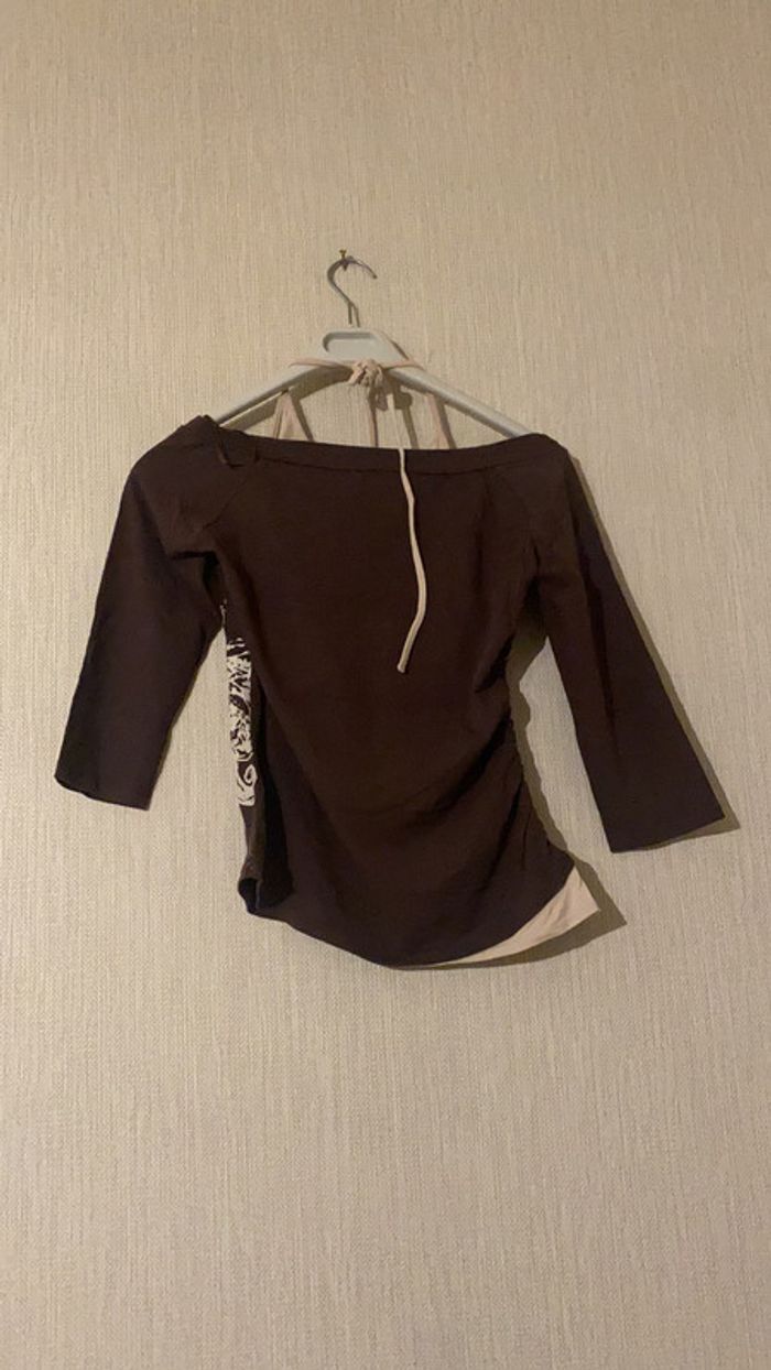T-shirt manches longues marron et blanc avec débardeur intégré Camaïeu Taille 2 Très bon état #amandinefemmem